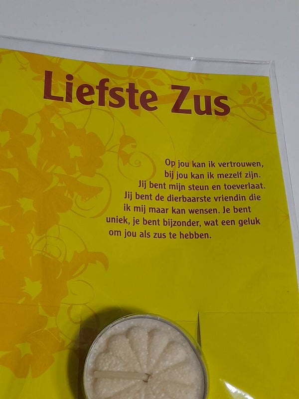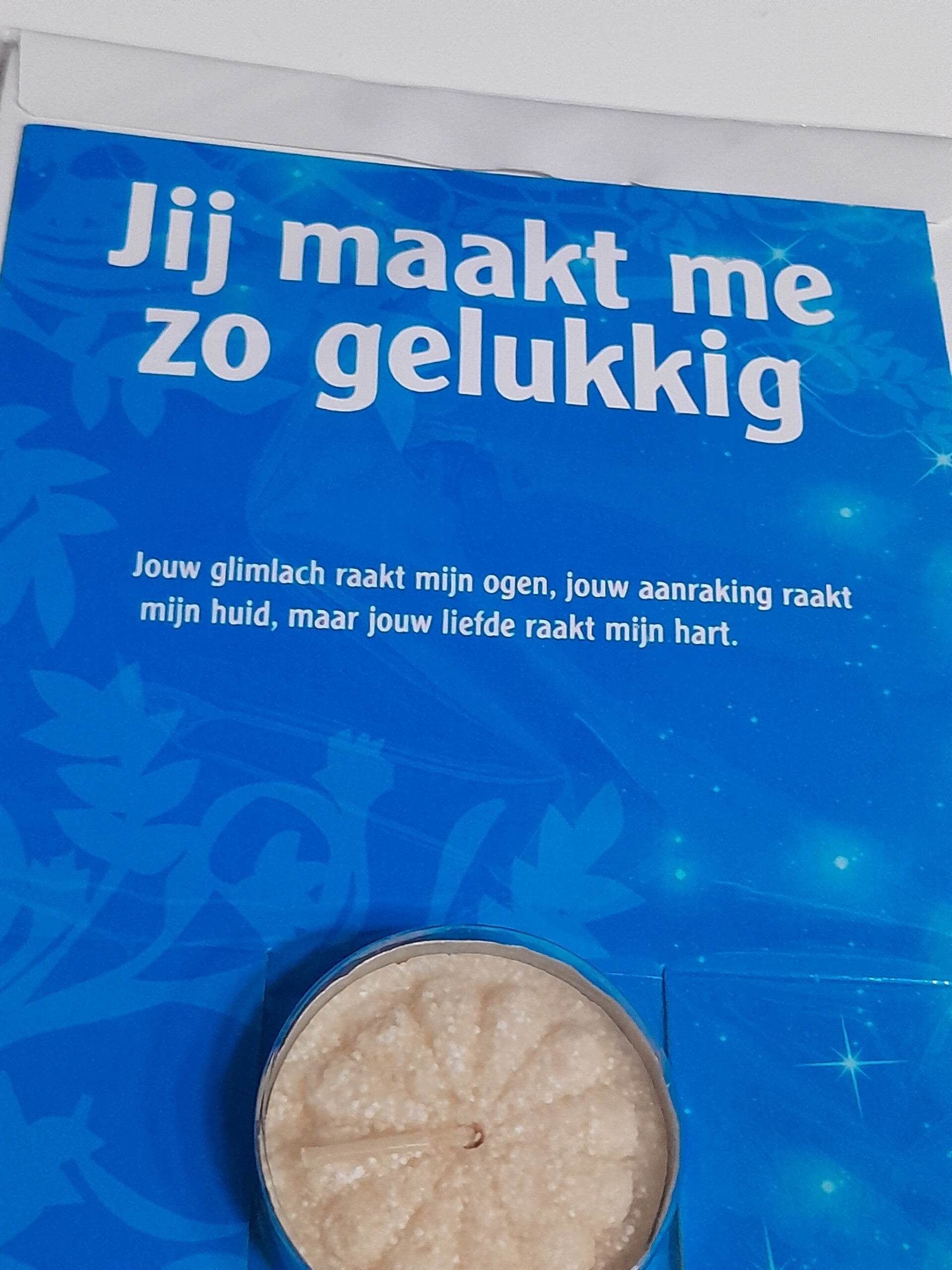 Leuke wenskaart met een mooie boodschap en een waxinelichtje.